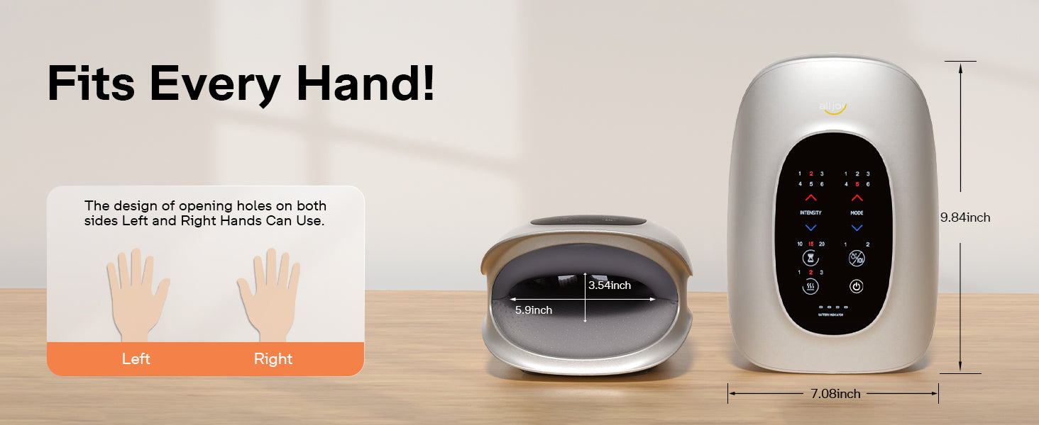 • Ergonomic Ambidextrous Design: The ALLJOY Hand Massager is expertly crafted for everyone, offering a perfect fit for both left and right hands. It features an independent thumb massage chamber and an open finger space, ensuring precise massage for every finger, the palm, and the wrist. This design guarantees a comfortable fit without squeezing the fingers, while delivering comprehensive, full-coverage massage. Effectively relieves hand fatigue, improves joint flexibility, and ensures a comfortable, burden-free experience