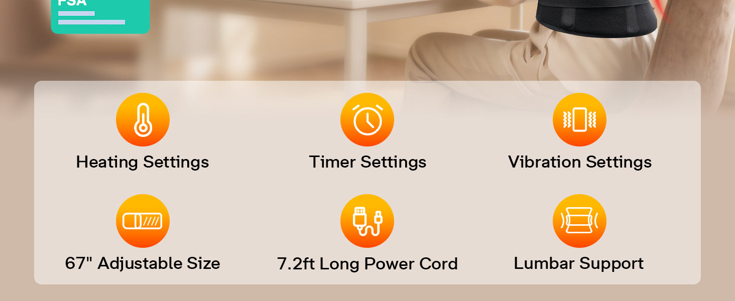 3 Heating, 3 Timer, 5 Vibrating, Back Lumbar Support, Plug-in Heaing Pad Back Massager